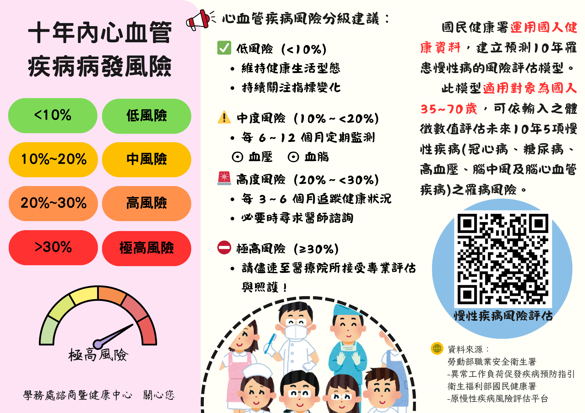 用來評估個人在未來10年內罹患心臟病或中風等心血管疾病的機率,可及早了解風險並預防發生。