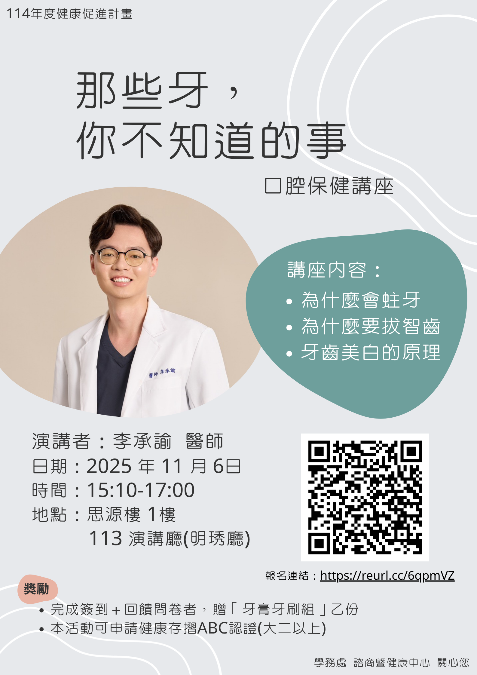 本場講座帶你一次釐清「為什麼會蛀牙」、「智齒該不該拔」、「美白到底怎麼白」,