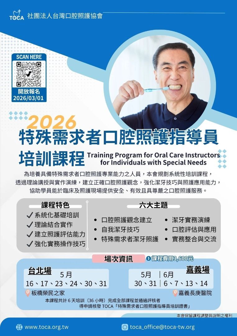 【轉知】社團法人台灣口腔照護協會辦理「115年特殊需求者口腔照護指導員培訓課程」